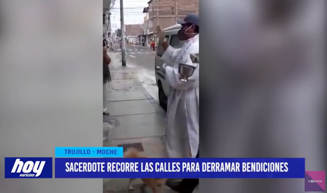 El sacedorte de la iglesia Santa Lucia de Moche, recorre las calles para derramar bendiciones y pedir a los vecinos que cumplan con las disposiciones del estado de emergencia.