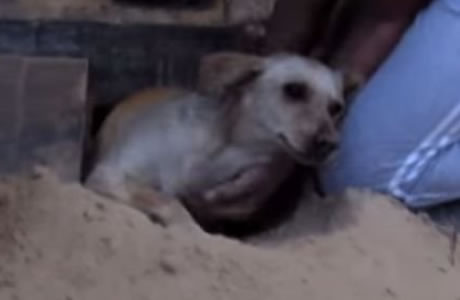Alarmados llamaron a la municipalidad pero pasaron dos días y nada, no venían atender la situación. Así que ellos decidieron hacerlo por su cuenta propia; en la reproducción del video se observa como un hombre empieza a abrir el suelo hasta encontrar a la perrita, la cual se encontraba embarazada.