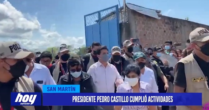 Pedro Castillo arribó el día de hoy a la región San Martín para cumplir una serie de actividades, entre ellas la entrega de títulos de propiedad y la inspección de un colegio.