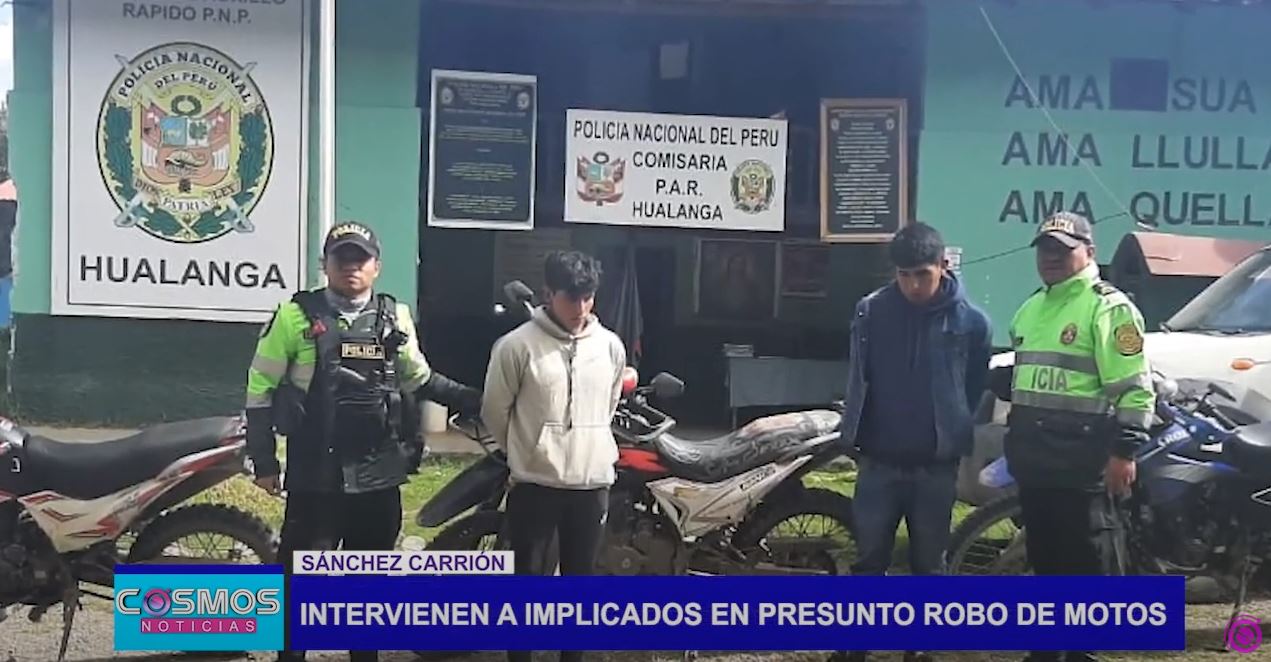 En la provincia de Sánchez Carrión, la PNP de la Comisaría de El P.A.R Hualanga, intervino a dos sujetos presuntamente implicados en el robo de motocicletas. Tras un operativo, se logró la incautación de tres vehículos menores.
