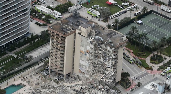 El ala noreste del edificio Champlain Towers se derrumbó en segundos a la 1.30 horas de la mañana (6.30 GMT) del jueves, cuando sus habitantes dormían, por causas no determinadas.