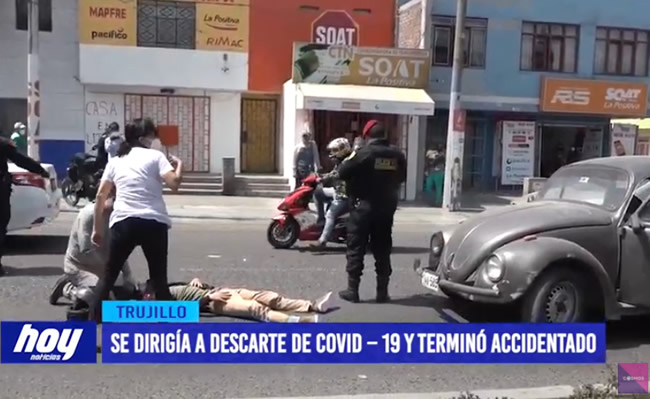 Un joven motociclista de 22 años de edad, que se dirigía a sacarse la prueba de descarte de la Covid–19, sufrió un accidente de tránsito en la cuadra cinco de la avenida América Sur.