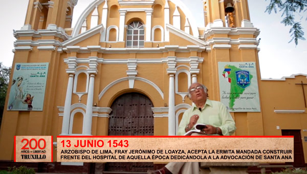 El Arzobispo de Lima, fray Jerónimo de Loayza, estando de paso por nuestra ciudad acepta “con elogios conmovidos” la fundación de la Ermita mandada construir por don Francisco Luis de Alcántara, fundador de la ciudad, frente del hospital de aquella época dedicándola a la advocación de Santa Ana, nombre que hasta hoy conserva la iglesia que reemplazó a la Ermita. Dicha iglesia figura tradicionalmente como la primera que tuvo Trujillo.