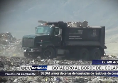 Pese a que la norma lo prohíbe, el SEGAT arroja a diario decenas de toneladas de residuos de construcción civil en el botadero El Milagro, el mismo que está a punto de colapsar por haber llegado al límite de su capacidad.