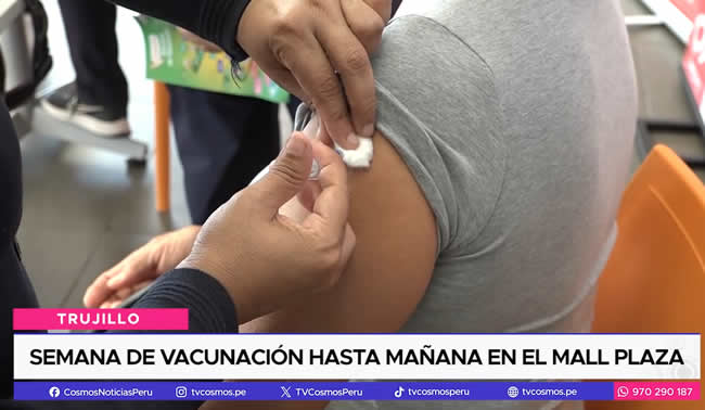 En el patio de comidas del Mall Plaza en Trujillo, la Gerencia Regional de Salud continúa con la Semana de Vacunación en las Américas. Hasta el momento, la gerencia lleva un reporte de más de 37 mil vacunados entre niños, adolescentes y adultos en la región.