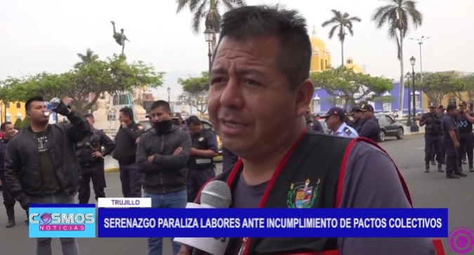 Trabajadores del área de Seguridad Ciudadana de la Municipalidad Provincial de Trujillo, nuevamente paralizaron sus labores, esta vez pidiendo a la autoridad edil cumpla con los pactos colectivos. A las afueras de la comuna provincial, alzaron su voz de protesta.