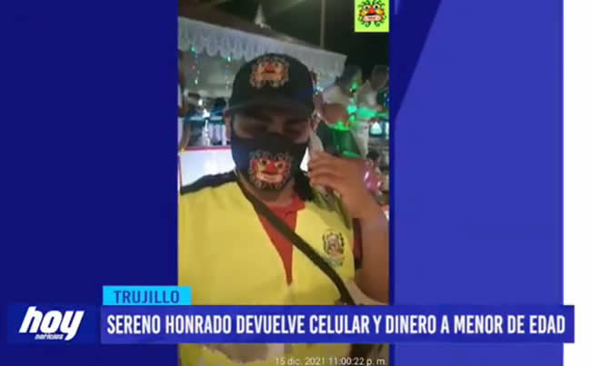 Un agente de seguridad ciudadana de Moche devolvió un celular y dinero en efectivo a una menor de edad. El hecho se produjo en la plaza de armas del distrito cuando se realizaba la procesión de la Virgen de la Puerta.