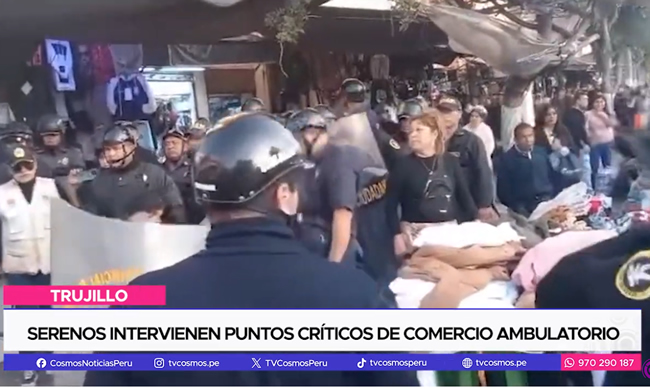 La Subgerencia de Seguridad Ciudadana de la Municipalidad Provincial de Trujillo se encargó de retirar a los vendedores que ocupaban veredas y pistas en las distintas zonas críticas de comercio ambulatorio.