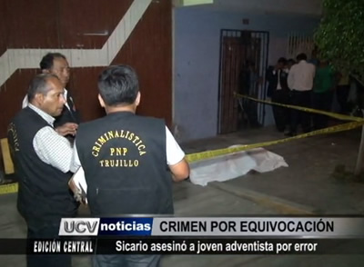 Un sicario asesinó al joven adventista, Ruperto Reyes Quispe al confundirlo con el hijo de otro pastor a quien extorsionaba desde hace varias semanas. Los deudos exigieron la pronta captura del criminal.
