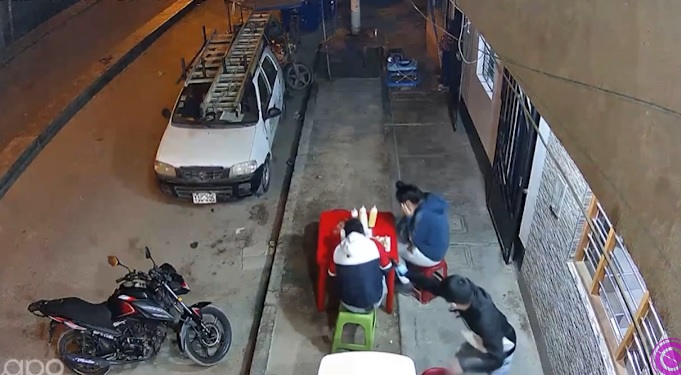 Las cámaras de seguridad registraron una dura escena ocurrida la noche del miércoles en el distrito de Casa Grande en la provincia de Ascope. Las imágenes muestran el momento cuando la víctima identificada como Jorge Ramírez Jara se encontraba cenando en los exteriores de este negocio en compañía de una fémina cuando de este local de comidas aparece un sujeto y lo acribilla en la espalda y en la cabeza quedando tendido en la mesa. La mujer huye entre gritos al interior del local.