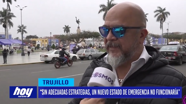 Frente a una posible declaratoria de emergencia en inseguridad ciudadana por tercera vez en la provincia de Trujillo, el regidor Luis Bahamonde aseguró que los que ya hubo anteriormente no sirvieron de nada y fueron inútiles, y eso se debe a que primero debería haber estrategias dentro de los cuales resaltó 3 niveles, entre ellos la respuesta inmediata por parte de la policía nacional y serenazgo, la falta de un sistema tecnológico que permita rastrear a los delincuentes y la poca implementación en las comisarías.