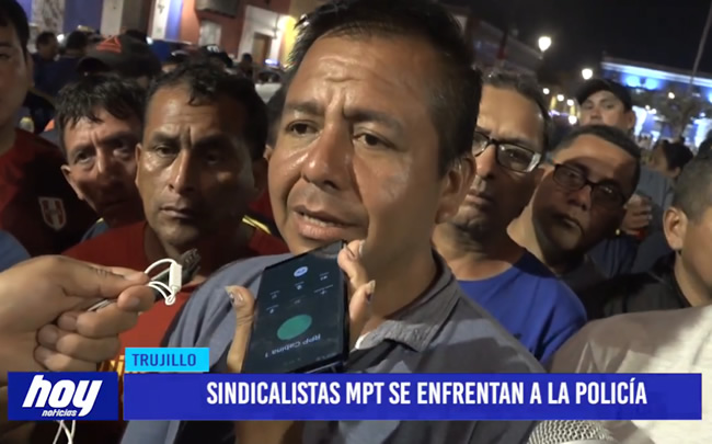 La tarde de ayer se registró un enfrentamiento entre sindicalistas ediles y agentes policiales en plena Plaza de Armas de Trujillo.