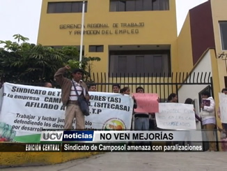 Integrantes del Sindicato de Trabajadores de Camposol hicieron sentir su voz de protesta frente a la Gerencia Regional de Trabajo. Los manifestantes se encuentran a la espera de mejoras salariales.