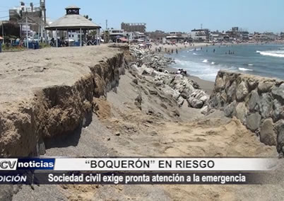 El Movimiento en Defensa del Medio Ambiente de Huanchaco pide a las autoridades que se declare en emergencia al sector llamado “Boquerón” porque está en riesgo ante el avance de la erosión costera.