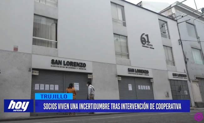 Socios de la cooperativa de Ahorro y Crédito San Lorenzo de Trujillo están muy preocupados con la situación de dicha cooperativa, intervenida por la Superintendencia de la Banca de Seguros y AFP, SBS, la cual el martes 30 de noviembre a través de este comunicado, pegado en la puerta, explicaban sobre este cierre, la causal: pérdida total del capital social y la reserva cooperativa.