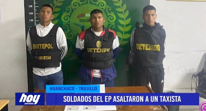 En el distrito de Huanchaco, en la ciudad de Trujillo, tres soldados quedaron detenidos y es que ocurrió un vergonzoso hecho, pues tres militares asaltaron a un taxista quien luego puso la denuncia respectiva y estos individuos fueron detenidos.