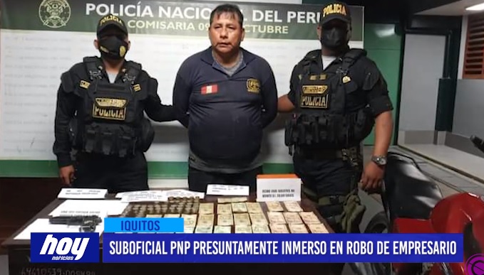 Tras ser alertados de un presunto hecho delictivo, el personal de la policía de la Comisaría 9 de Octubre de la ciudad de Iquitos, se constituyeron al Asentamiento Humano “Simón Bolívar”, logrando intervenir y detener al suboficial de 2da PNP julio Edwin Prettel Guerra (45), y un sujeto identificado como Enderson Inuma Ramirez (40), por encontrarse inmersos en la presunta comisión del delito contra el patrimonio – asalto y robo a mano armada, en agravio del empresario, Recner Portocarrero Villalobos (43).