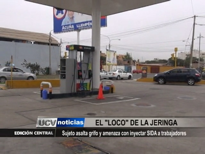 Una noticia realmente insólita. Un sujeto asaltó un grifo tras amenazar a los trabajadores con inyectarles sangre supuestamente infectada con VIH SIDA. En otro hecho similar, dos adolescentes se llevaron 400 nuevos soles de una estación de servicio de El Milagro.