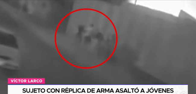 Según testigos, cuatro jóvenes caminaban por la vereda cuando el delincuente apareció de improviso y los amenazó con el arma falsa. Tres de ellos huyeron despavoridos, mientras que uno de los ciudadanos que permaneció en el lugar fue despojado de su teléfono celular. Cámaras de seguridad de una vivienda registraron el momento del asalto. Se presume que un segundo delincuente esperaba metros más allá para facilitar la huida.
