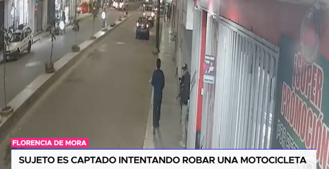 Cámaras de seguridad de un negocio de venta de muebles situado en la cuadra tres de la avenida 26 de marzo en el distrito de Florencia de Mora, captaron a un sujeto intentando robar la motocicleta estacionada en los exteriores la noche del último miércoles.