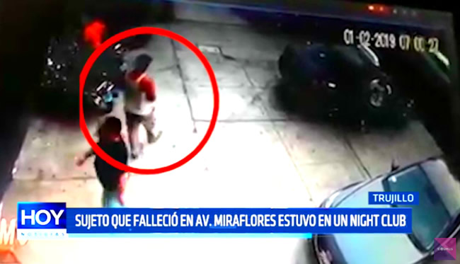 Imágenes confirman que sujeto que falleció en la cuadra 5 de la avenida Miraflores, aparentemente pepeado, minutos antes había salido de un night club de esta zona.