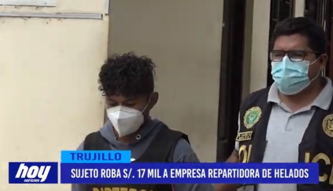 El Dpto. de Investigación Criminal Norte, logró la captura de Anthony Velásquez Flores, presunto integrante de la banda delictiva “Los frioricos de Manuel Arevalo”, por el robo de 17 mil soles a una empresa repartidora de helados.