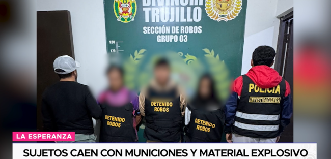 Esta intervención fue realizada en el sector Víctor Raúl Haya de la Torre en el distrito de La Esperanza. Durante el operativo los efectivos policiales lograron interceptar un mototaxi que intentaba darse a la fuga. En el registro del vehículo se incautó cartuchos de dinamita, así como municiones de diferentes calibres.
