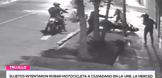 Un video, que viene circulando en redes sociales, registró el intento robo de una motocicleta a un ciudadano cuando llegaba a su vivienda en la urbanización La Merced. En las imágenes se aprecia a cuatro delincuentes, que se movilizaban en dos motos lineales. Uno de los asaltantes utilizó un dispositivo de descarga eléctrica para someter a la víctima, mientras que su cómplice, armado con un arma de fuego, intentaba hacerse con el control de la motocicleta. Sin embargo, no logró encender el vehículo y, en su frustración, decidió huir del lugar junto a sus compinches.