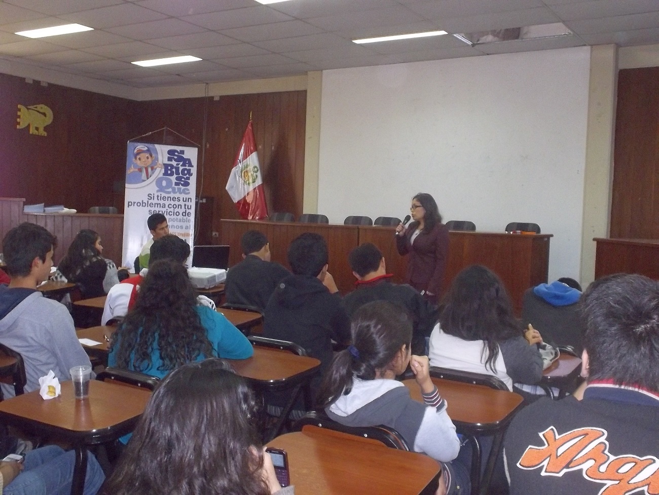 La capacitación, titulada “Aprendiendo a usar responsablemente el agua potable”, se llevó a cabo en el auditorio del Centro Pre Universitario de la Universidad Nacional de Trujillo, desde las 11:00 a.m., donde la representante de la SUNASS explicó el rol del organismo regulador del agua potable, la importancia del uso responsable y su conservación, así como algunos tips de ahorro del agua potable.