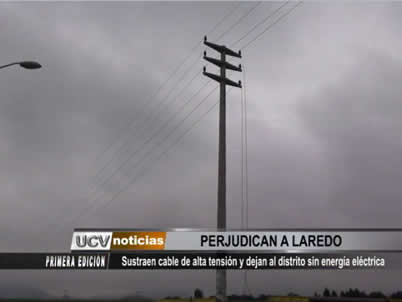 Delincuentes sustraen más de 200 metros de cable de alta tensión y dejan sin suministro de energía eléctrica a todo el distrito. El comercio en general se vio altamente afectado.