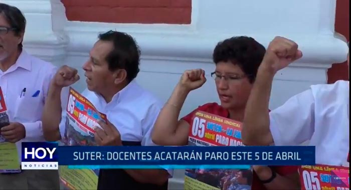 Los docentes afiliados al Sindicato Unificado de Trabajadores de Educación Regional (SUTER) de La Libertad, ratificaron el acatamiento de un paro nacional convocado para este 5 de abril. Los maestros aclararon que no temen a los descuentos anunciados.