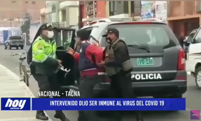 En Tacna agentes de la Policía Nacional intervinieron a un transeúnte que caminaba por las calles sin usar mascarilla pese a ser obligatorio como medida de protección a fin de evitar el contagio del Covid-19.