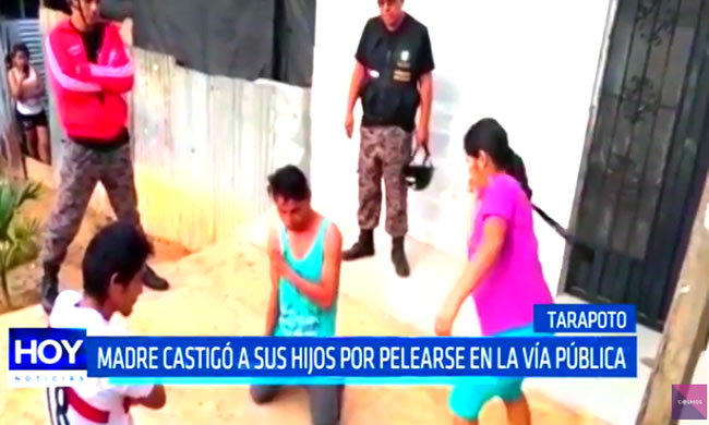 En Tarapoto una madre de familia a petición de los vecinos y de serenazgo, castigó a sus dos hijos, quienes se liaron a golpes en plena vía pública incluso intentaron lastimarse con machetes.