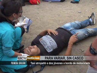 Los accidentes de tránsito continúan. Esta vez dos jóvenes, que transitaban en una motocicleta, fueron arrollados por un taxista. Pese a no contar con ninguna medida de seguridad, como el casco, sobrevivieron.