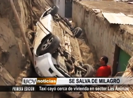 Toda una familia se salvó de una muerte segura en el sector Las Ánimas de El Porvenir, en donde el conductor de un taxi perdió el control de su vehículo y rodó por un cerro, cayendo en el patio de su vivienda, en donde felizmente no había niños jugando.