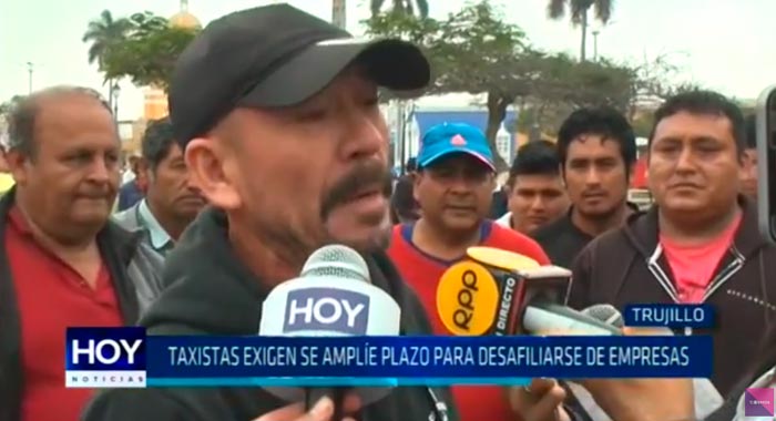 Decenas de taxistas llegaron a la comuna de Trujillo para exigir al pleno del Concejo Provincial apruebe la ampliación del plazo para poder desafiliarse de las empresas tras denunciar abusos. Además, cuestionan el trabajo de algunos regidores.