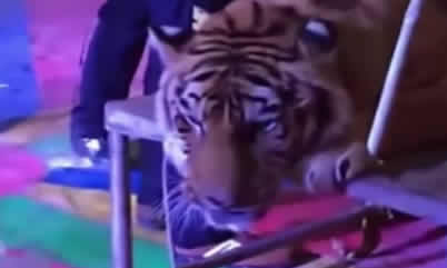Usando palos y sogas, los trabajadores de un circo chino amarran a un tigre sobre una mesa de metal con el fin de someterlo y poder hacer montar a los asistentes al espectáculo, y así tomarse fotos. Según se sabe, esta especie está en peligro de extinción y tras la difusión del video los defensores de los animales se manifestaron.