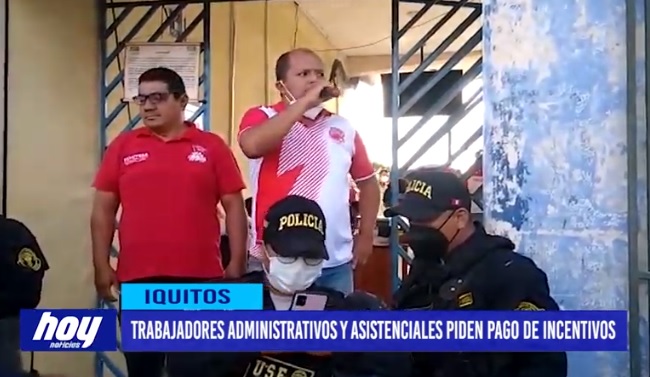 Trabajadores administrativos y asistenciales de la Dirección Regional de Salud en Loreto llegaron a levantar su voz de protesta frente a la sede central de la mencionada institución, con la finalidad de exigir al doctor Channer Zumaeta, director regional de Salud en Loreto, que cumpla con la Resolución Gerencial Regional 008, dónde indica el pago de incentivos laborales.