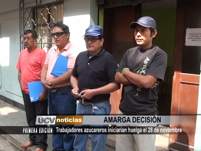 El sindicato de trabajadores de la Empresa Agroindustrial de Laredo anunció que el próximo 28 de noviembre iniciarían una huelga indefinida si los representantes de la azucarera no atienden su pliego de reclamos.