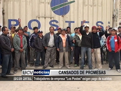 Los trabajadores de la empresa Los Postes realizaron una protesta para exigir el pago de su sueldo postergado desde hace dos meses. Además, exigieron mejores condiciones laborales.