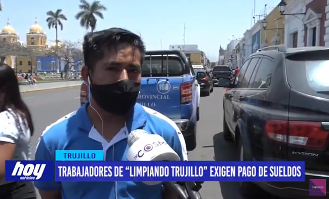 Trabajadores del SEGAT del programa temporal “Limpiando Trujillo” reclamaron frente al municipio de Trujilo, para exigir el pago de sus remuneraciones. Denuncian que solo tienen una muda de su uniforme.