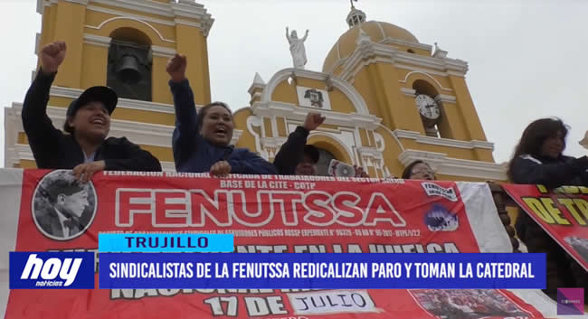 Buscaron la mediación de la iglesia católica. Ésta vez los integrantes de la federación regional unificada de trabajadores del sector salud, Fenutssa tomaron por varios minutos la Catedral de Trujillo. Su reclamo es que la ministra de Salud reconozca un acta que firmaron en 2018.
