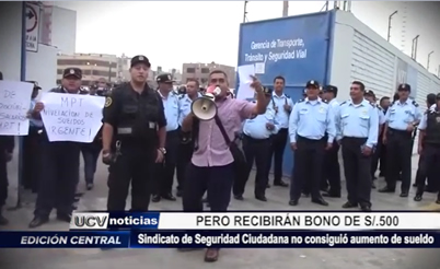 El sindicato de trabajadores de Seguridad Ciudadana de Trujillo no logró, en su pacto colectivo de 2015, un aumento de sueldo, debido a que la comuna no cuenta con presupuesto suficiente, pero sí consiguieron un bono de 500 soles que se hará efectivo en setiembre.