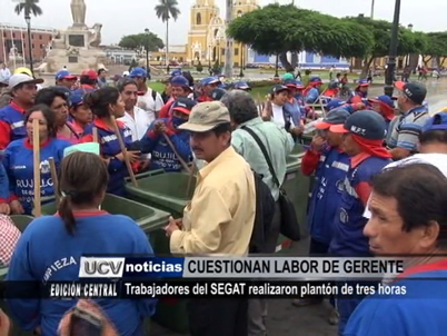 El sindicato de trabajadores del SEGAT realizó un plantón en los exteriores de la Municipalidad Provincial para denunciar presuntos abusos y exigir la salida del gerente Miguel Vaisman. El alcalde César Acuña se reunió con los sindicalistas.