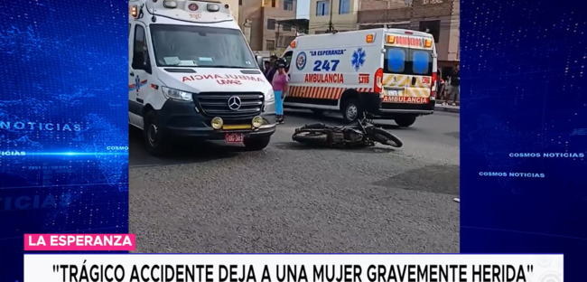 Tras el incidente, ambos fueron trasladados de inmediato al hospital de Alta Complejidad en La Esperanza para recibir atención médica. Las autoridades informaron que, aunque el motociclista también resultó herido, su situación es menos grave que la de la mujer.