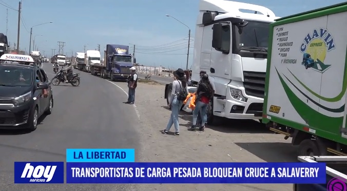 Por tercer día consecutivo transportistas de carga pesada acataron el paro nacional de transportes que se realiza desde el día lunes en algunas regiones del país de manera indefinida. Durante aproximadamente dos horas se vio interrumpida la Panamericana Norte, a la altura del puente de Moche, en Trujillo, producto del traslado de 45 unidades de carga pesada que se sumaron a sus pares al paro indefinido que acatan los transportistas de este sector a nivel nacional. Los manifestantes, junto a sus vehículos, se congregaron en el cruce de Salaverry, realizando una movilización pacífica.