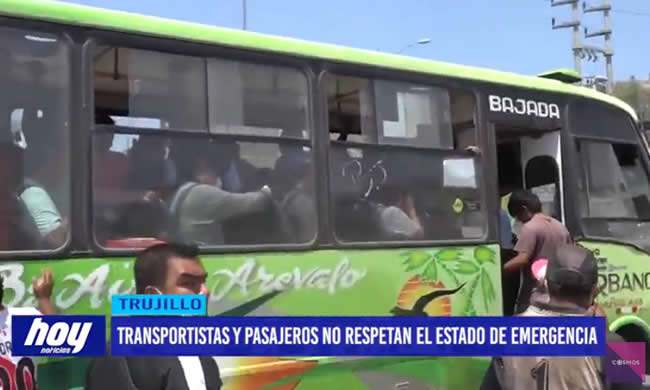Transportistas y pasajeros no respetan las disposiciones del estado de emergencia en cuanto al servicio de transporte público que prohíbe llevar pasajeros de pie y sin elementos de protección.