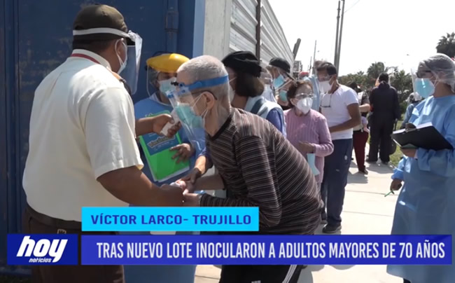 Grata noticia se llevaron los adultos mayores de 70 años del distrito trujillano de Víctor Larco, pues se habilitó las vacunas para esta población, además se autorizó la primera dosis, tras nuevo lote, lo que permitió esta inmunización a los adultos quienes de manera ordenada esperaron su turno.