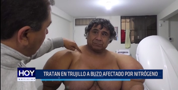 Un buzo cuyo cuerpo se deformó por inhalar nitrógeno está recibiendo tratamiento en Trujillo. La terapia es con oxígeno y se espera que en dos semanas recupere su condición física.