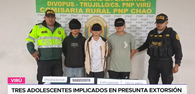 Los intervenidos, identificados con iniciales J. T. B. (17), J. D. T. A. (15) y J. M. A. L. (15), estarían inmersos en infracción a la Ley Penal por el delito de tenencia ilegal de material explosivo. Ellos se desplazaban en un mototaxi azul con negro, de placa 1793-4K.